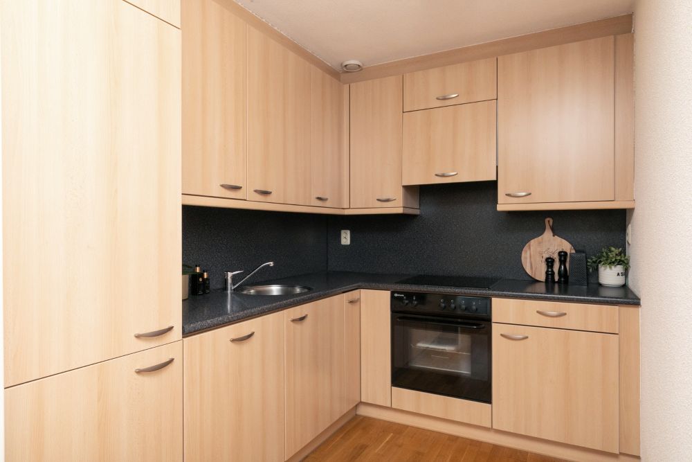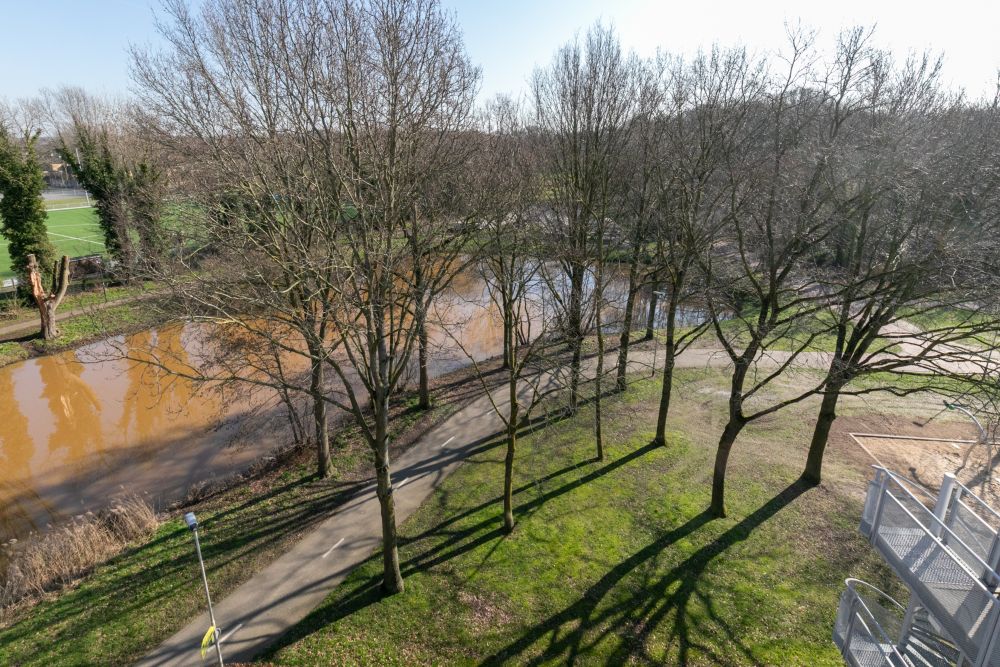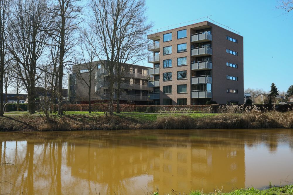 Het moderne appartementencomplex bestaat uit twee gebouwen die met elkaar verbonden zijn via een zwevende galerij. Het appartement bevindt zich in het achtergelegen gebouw en ligt daardoor bijzonder rustig. De groene omgeving, het vrije uitzicht en het ontbreken van een galerij langs het appartement zorgen voor optimale privacy en een ruimtelijk gevoel.