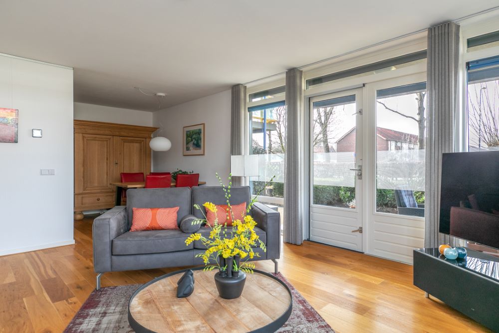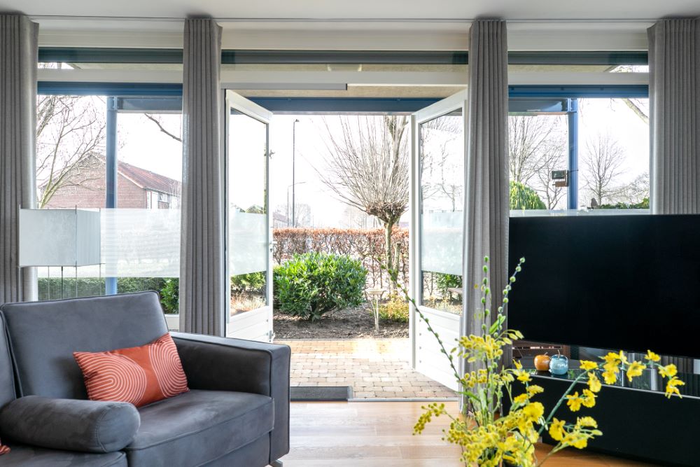 Vanuit de woonkamer is via openslaande deuren jouw tuin bereikbaar.