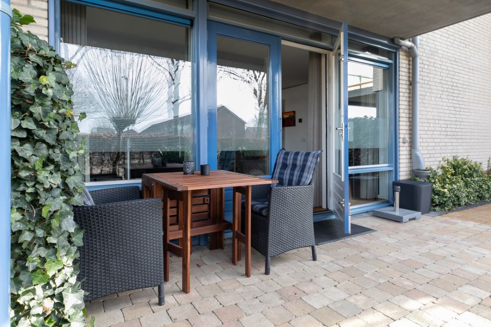 Via dubbele openslaande deuren is er toegang tot jouw tuin met terras dat ruimte biedt voor een leuk zitje en loungebank. De tuin ligt op het Westen, dus genieten van de zon tot in de late uurtjes.