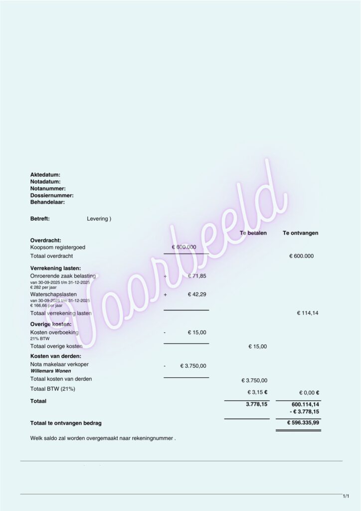 De nota van afrekening is het financiële overzicht van jouw verkoop of aankoop.