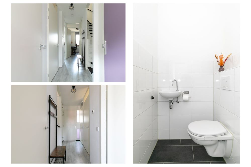 Entree/ hal met meterkast, kast met CV installatie en toegang tot 2 ruime slaapkamers, de badkamer, het toilet, de trapkast met veel bergruimte en via de vaste trapopgang toegang tot de 4de verdieping.